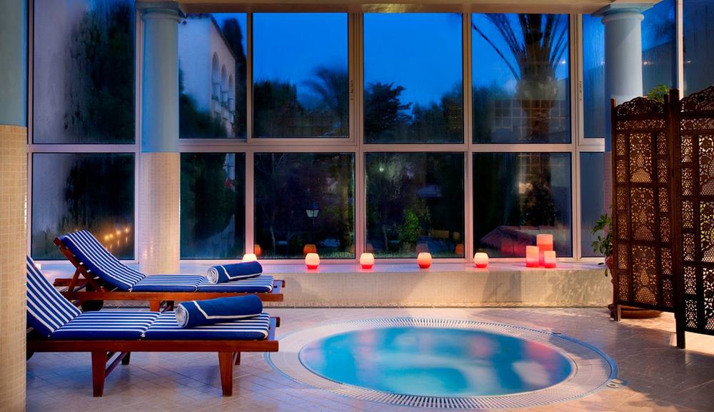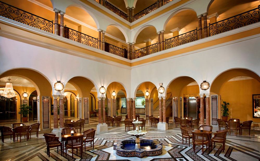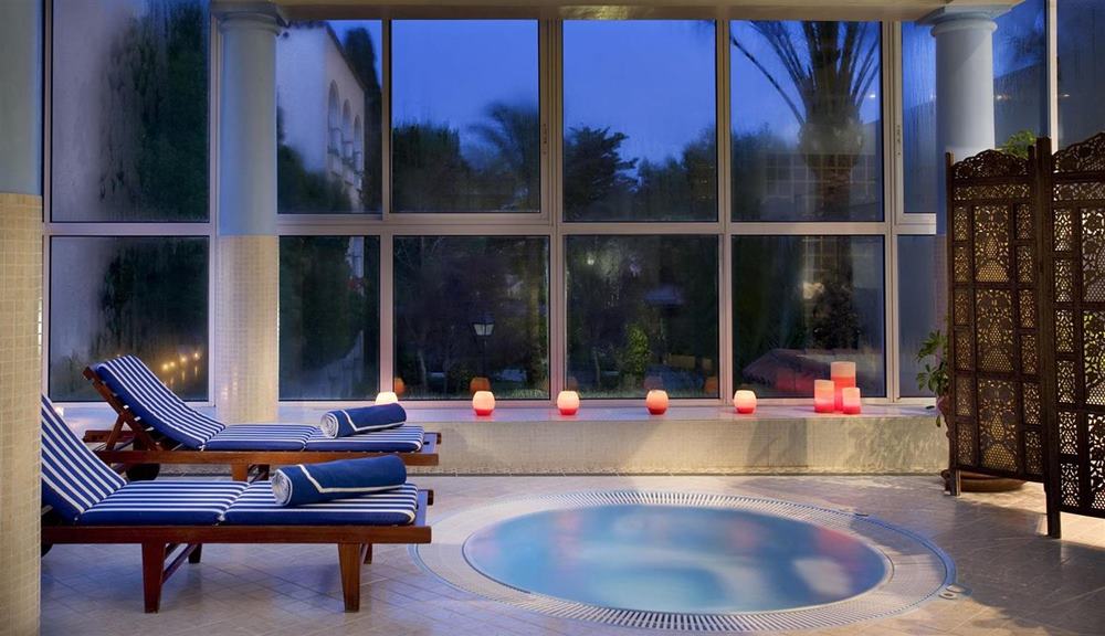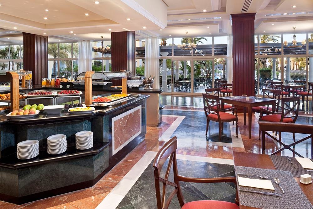 Ferienanlage bestehend aus Hauptgebäude und 6 kleineren Nebengebäuden. Eingangshalle mit andalusischer Säulengalerie, Réception, Lift, Klimaanlage, Spezialitätenrestaurant "Mediterráneo" à la carte mit Aussenterrasse, Lobby Bar mit Piano. Originelle marokkanische Teestube.