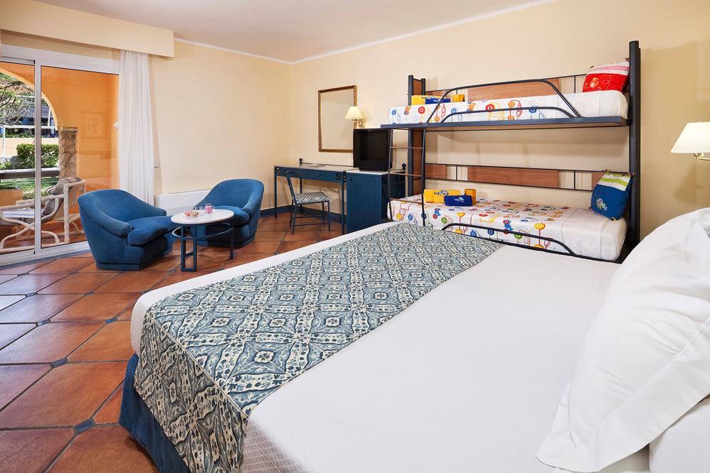 Das hotel bietet 255 Doppelzimmer mit Bad/WC und Fön, Telefon, Sat-TV, Musikkanal, Klimaanlage, Minibar, Mietsafe sowie Balkon oder Terrasse. 5 Junior Suiten zusätzlich mit Salon. 25 Familienzimmer (für max. 2 Erwachsene und 4 Kinder) mit 2 getrennten Schlafräumen und einem Bad/WC.