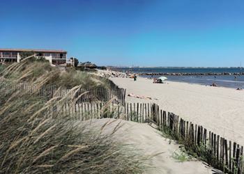 Direkt am langen, flach abfallenden Sandstrand, zwischen Grand Motte und Grau du Roi. Ca. 2-5 km von den Ortszentren entfernt. Montpellier ist 25 km entfernt.