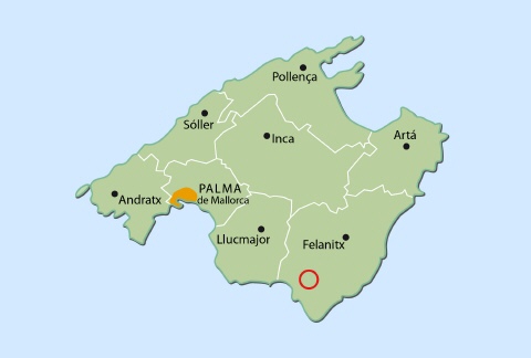 LageBauernhof in ländlichem Gebiet im Südosten von Mallorca. Im hübschen Städtchen Campos (4 km) gibt es alles für den täglichen Bedarf, Restaurants, Bars und Märkte. Die einmalig schönen Strände "Es Trenc" und "Sa Rapita" sind wenige Fahrminuten entfernt. Die Hauptstadt Palma mit dem Flughafen ist ca. 36 km entfernt.