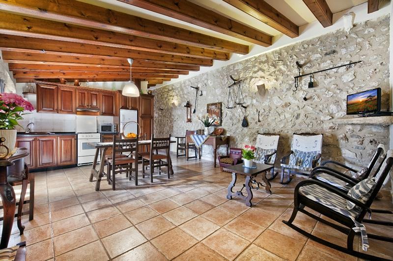 Am Fuss der Tramuntana-Berge liegt versteckt in einem grünen Tal ein zauberhafter Garten. Es riecht nach Blumen und Orangenblüten. Mittendrin in dieser Oase eine Finca mit schönen Zimmern und einigen Wohnungen, eingebaut in über 300-jähriges Gemäuer. Gepflegtes Bauernland soweit das Auge reicht, Pferde, Ziegen, eine Schafherde, ein Stück ursprüngliches Mallorca.
