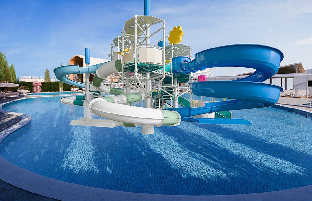 Die Anlage besteht aus einem Hauptgebäude und mehreren Bungalowreihen im weitläufigen Garten, teilweise mit direktem Zugang zu einem Gemeinschafts-Pool. Sie umfasst 261 Wohneinheiten. Ein Aufenthaltsraum, Fernsehraum, Minimarkt, Buffetrestaurant, 4 thematische à la carte Restaurants , Café, Poolbar, Snackbar und Bar, sowie einem Süsswasser Pool mit kostenlosen Liegen und Sonnenschirmen.