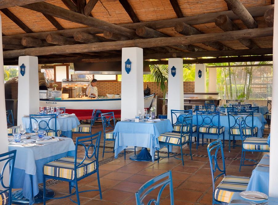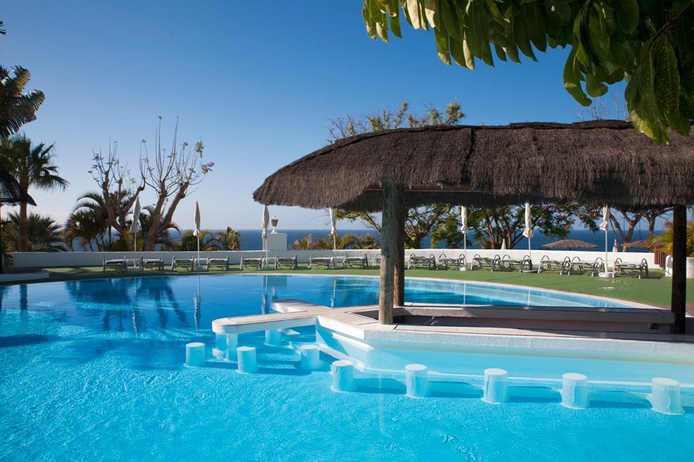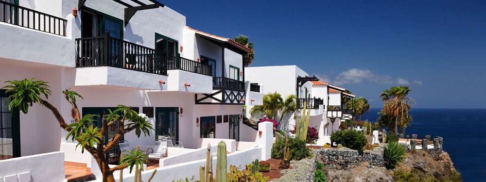 FreizeitGratis: Sportplatz, Fitness, Pfeilbogen- und Pistolenschiessen, Pétanque, tägliches Fitness- bzw. Animationsprogramm, 4 Süsswasser-Pools (beheizbar), Beach-Club Laurel mit beheizbarem Meerwasser-Pool, abends Live-Musik oder Shows Gegen Gebühr: 5 Tennisplätze (4 mit Quarzsand) mit Flutlicht, Tennisschule, 2 Squashcourts, Wellnesscenter Club Buganvilla (Sauna, Friseur, Massage, Beauty und Thalasso), Billard, Tischfussball, Tauchbasis, Minigolf im Club „Laurel“,18-Loch/Par 71 Golfplatz mit Trainings-Tee, Chipping und Putting Green, Golfschule –PGA und Clubhouse. KinderKinderbecken, Miniclub (4-12 Jahre) Unterkunft434 freundlich eingerichtete Zimmer, verteilt auf zweistöckige Gebäude. Standard-Zimmer: mit Einzelbetten, Telefon, Radio, Sat- und Pay-TV, Raummusik, Mietsafe, Minibar, (auf Wunsch, mit Depot), Klimaanlage, Bad, Terrasse und Balkon (Gartenblick) Comfort-Zimmer: mit gleicher Ausstattung, jedoch mit seitlicher Meersicht Superior-Zimmer: mit gleicher Ausstattung, jedoch mit direkter Meersicht Familienzimmer: haben zusätzliche eine 2. Etage mit Wohnzimmer, darin ein Sofabett, Tisch und Stühle, Dusche sowie kanarischer Balkon und Dachterrasse mit Dusche und Liegen. Die Anlage bietet eine Empfangshalle mit Bar, Réception, 2 Restaurants und 2 Restaurants (à-la-Carte, Barbecue) mit vielseitiger Küche (Buffet und Menuwahl), Dancing-, und 2 Pool-Bars, Terrasse mit Liegen und Schirmen, Aufenthaltsräumen, Disco, Amphitheater und Boutiquen. LageIm Süden der Insel, auf einer Klippe 50 m über dem Meer und dem Fischerort Playa de Santiago.