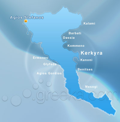 Das Dorf Agios Stefanos liegt 40 km nordwestlich der Stadt Korfu.